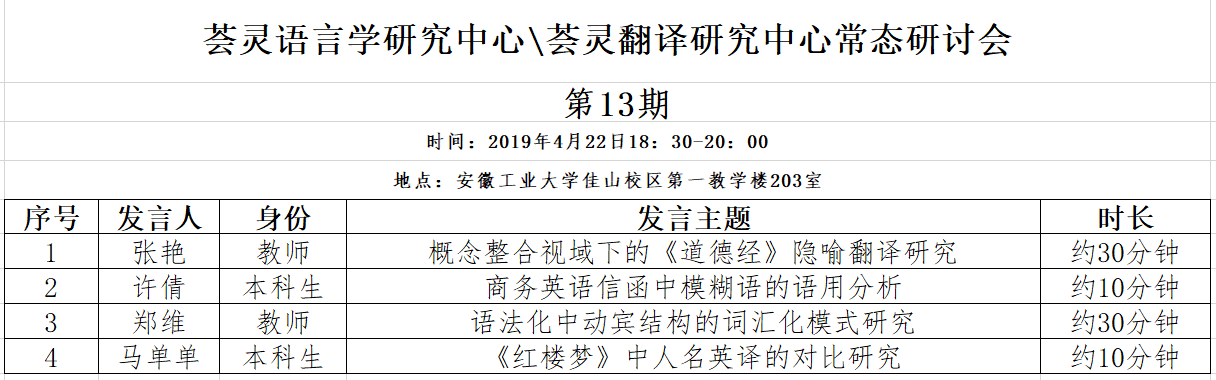 荟灵语言学研究中心\荟灵翻译研究中心常态研讨会第13期