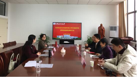 曹瑞斓对张广奇一行来公司交流表示欢迎,她简要介绍了公司的发展历程、专业与学科现状、科研与社会服务和实验室平台建设等情况,详细介绍公司翻译本科专业、商务英语研究二级硕士点和翻译专业硕士点申报和建设的经验和做法。陈琳介绍了翻译本科专业培养目标、课程结构和专业特色等情况。张广奇感谢公司的热情接待,表示将认真学习和研究公司的宝贵经验。