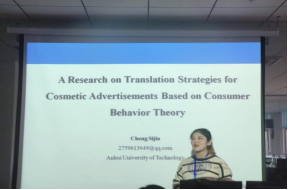 另外,当天下午大会设立“文学”、“语言学”、“翻译”、“外国教学及相关研究”四个分论坛,围绕外语学科及相关学科的研究理论、内容、方法和范式进行交流与探讨。硕士生梁文静、程思佳同学分别作了题为“国内元话语研究的可视化分析(1997-2018)” 和“基于消费者行为学理论的英语化妆品广告汉译策略研究”的分会场口头报告,均获得荣誉证书。