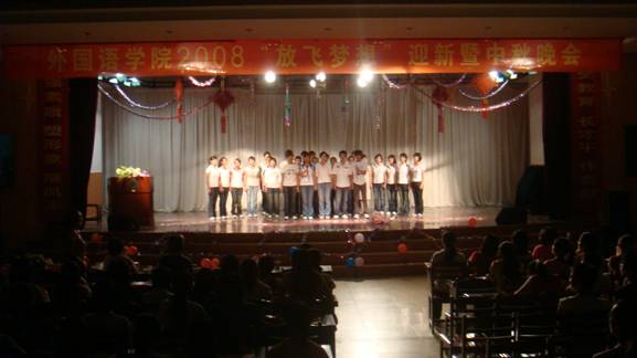 开场舞《喜迎新》拉开了晚会的序幕,带动了全场所有观众的热情。08级新生带来的歌曲《阳光总在风雨后》唱出了他们追逐梦想的激情和他们渴望展翅的心愿;三句半《军训初体验》,道出了他们对军训生活的理解和对老员工活的憧憬;神秘的魔术表演,富有中国古典韵味的古筝、书法,充满现代气息的舞蹈……呈现给观众一个多姿多彩的青春舞台,迎来在场观众的阵阵掌声;合唱《明天会更好》更是拉动全场观众,大家全体起立合唱希望之声,晚会以一幅和谐画面落幕。