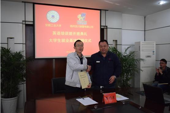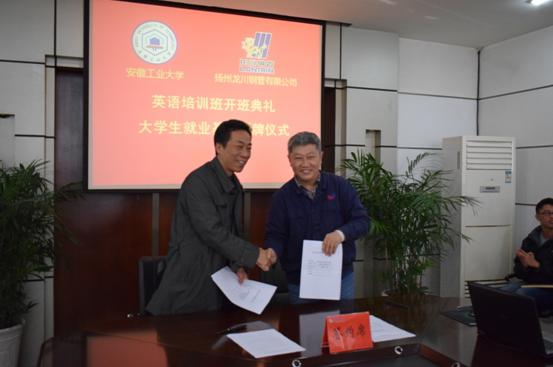 仪式上,陈润向马自强授牌,建立m88官网-龙川钢管有限公司“老员工就业基地”。校就业中心主任丁忠利介绍了公司老员工就业工作和就业基地建设情况,校企双方签订了人才供需合作协议。
