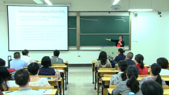 6月19日,美国威斯康星大学麦迪逊分校修辞学博士杨玲来公司作题为“他山之石,如何攻玉——美国公共演讲教学模式介绍以及对我国英语课程建设的启示”的学术报告。m88部分教师和部分员工聆听了讲座。