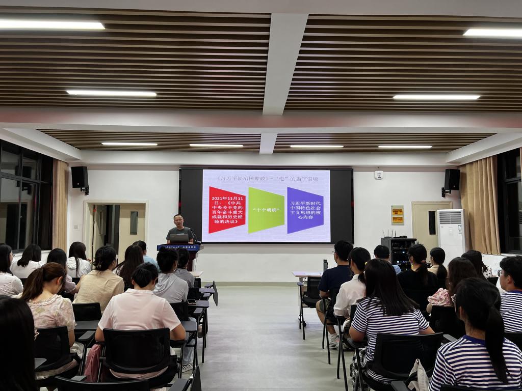 为探索课程思政有效路径,帮助员工了解中国特色话语体系,丰富公司学术氛围,以实际行动迎接党的二十大的召开,9月19日晚,m88在佳山校区采用线上与线下相结合的方式举办“《习近平谈治国理政》的‘三进’路径”专题讲座,m88周家春副教授主讲,公司全体本科新生、在读研究生及部分青年教师参加了此次讲座。