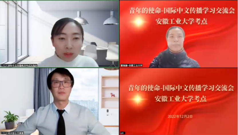 2022年12月2日晚,由中国外文局教育培训中心领导和专家主讲的国际中文传播教师证书考试m88官网考点“青年的使命——国际中文传播学习交流会”通过腾讯会议和B站转播顺利举行。本次交流会由m88经理曹瑞斓主持,中国外文局教育培训中心国际中文传播教师证书考试办公室项目推广负责人康雷主任、项目推广专员刘海珍主讲,m88师生和各地各界对国际中文传播兴趣浓厚的师生和友人500余人参加了本次交流会。