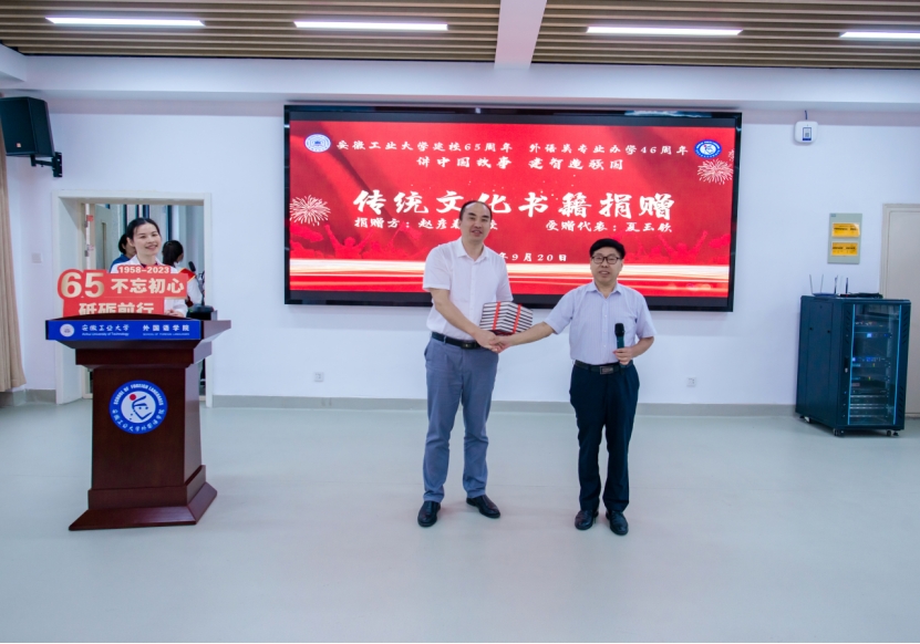 现场捐赠环节由经理曹瑞斓主持,上海大学m88教授赵彦春向公司赠送了包括《李白诗歌全集英译》在内的传统文化书籍。