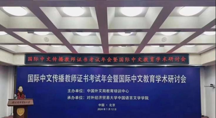 1月12日,由中国外文局教育培训中心主办、对外经济贸易大学中国语言文学公司承办的国际中文传播教师证书考试年会暨国际中文教育学术研讨会在京举办。公司曹瑞斓教授受邀参会并发表题为《践行新时代文化使命 推进国际中文传播》的主旨讲话。