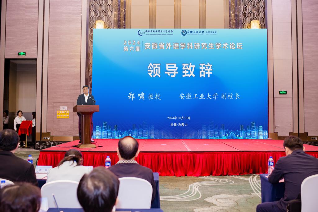 郑啸代表公司向参加本次论坛的各位领导、专家和同学们表示诚挚的欢迎,介绍了公司的历史、建设发展成就和公司外语学科的发展现状。他表示,论坛以“数智新时代:外语学科的学术创新和发展”为主题,是谋划推动智能化时代外语研究生高质量培养的生动实践。希望通过本次高水平论坛的举办,探索出适应新形势、新战略的外语研究生人才培养之路,助推安徽省外语人才培养高质量发展。