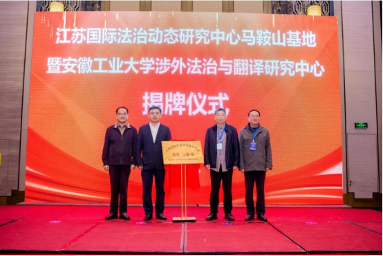 开幕式上,还举行了江苏国际法治动态研究中心马鞍山基地暨m88官网涉外法治与翻译研究中心揭牌仪式。闭幕式上,对论坛收到的100余名研究生的学术论文,经过前期评审,进行了现场颁奖。安徽省外国语言文学学会秘书长曹军教授代表学会向下一届承办单位安徽理工大学m88代表进行了授旗。