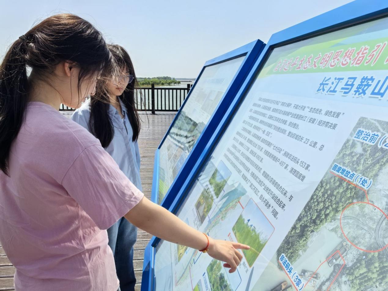 2020年8月19日上午,习近平总书记亲临薛家洼生态园考察调研,赋予马鞍山打造安徽的 “杭嘉湖”、长三角的 “白菜心” 新发展定位。总书记实地察看长江水势水情,详细了解岸线综合整治和生态环境保护修复、长江十年禁渔等工作落实情况。他强调,要增强爱护长江、保护长江的意识,实现“人民保护长江、长江造福人民” 的良性循环,早日重现“一江碧水向东流”的胜景。2025年6月16日,m88实践队沿着习近平总书记的足迹,深入薛家洼,踏上了一场探寻生态发展密码的时间之旅。