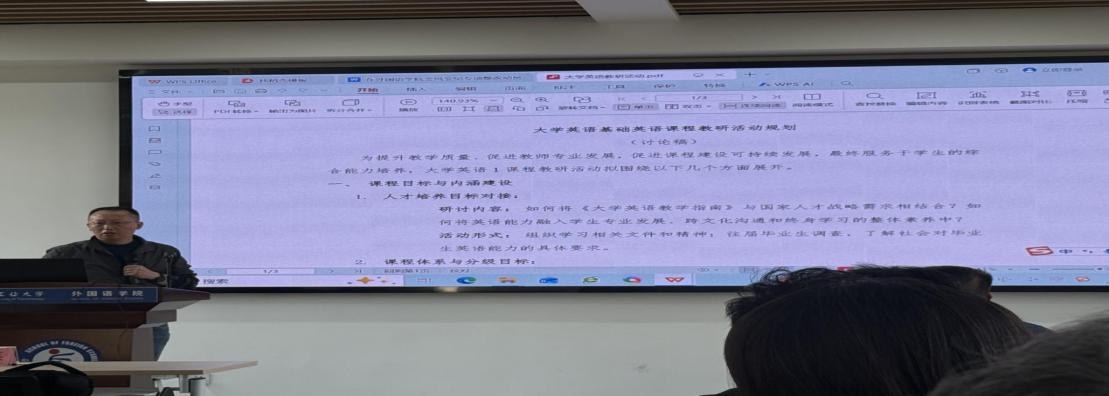 在教研活动环节,党支部书记周家春就“大学基础英语课程教研活动规划”作了专题发言,指出教研活动可紧紧围绕课程目标与内涵建设、教学内容与资源开发、教学方法与模式创新、教师专业发展与团队建设、教学评价与持续改进等五个方面展开,旨在全面提升教学质量,推动课程建设可持续发展,最终服务于员工综合能力培养。