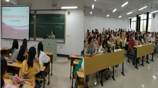 在报告过程中,陈琳带领员工从音形循环、音形义循环、单词复习等三个步骤进行了词汇音、形和义循环操练。现场气氛活跃,同学们被这种新的词汇记忆法所吸引,认真操练。陈琳讲到,音形义循环的目的,是合理利用记忆规律科学强化训练,达成对于单词的快速反应能力,从而有效记忆包括“音”、“形”、“义”在内的信息,为学习者提供单词故事,有效帮助学习者创造语境快速记忆单词词义同时尝试运用词汇,以此加深单词理解和记忆。