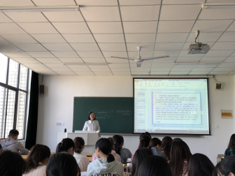 2019年10月15日上午3.4节课,外语系副教授宁静老师在佳山校区第一教学楼504室举行公开观摩课,课程为综合英语3。m88各系部教师走入课堂听课 、观摩、学习。