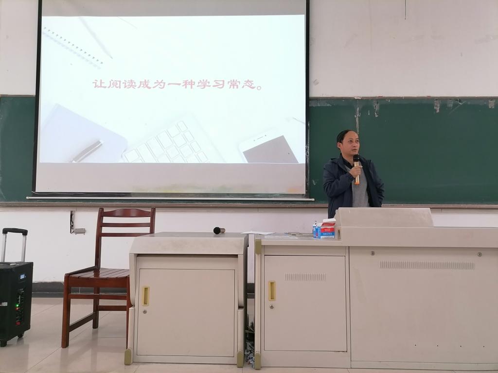 讲座伊始,蒯振华老师首先用两个简单小问题调动了现场同学对于此次演说的兴趣,他通过与员工们的互动激发其热情与积极性。接着带领同学们一同赏析《论读书》片段,着重阐述了输入与输出理论的要点,并对Elliss的三大语言输入观进行了对比分析。然后蒯振华介绍了英语专业的65本推荐书目并就如何有效阅读的问题提出了三大建议。最后本次活动在“让阅读成为一种常态”结语中圆满结束。