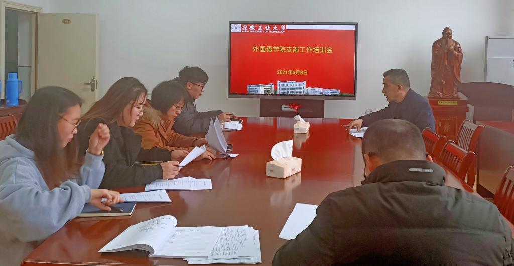 3月8日下午,公司党委在佳山校区教一407室召开了支部工作专题培训会,公司党委书记黄宇弦主讲,公司两个员工党支部支委、辅导员和党委秘书参加了会议。