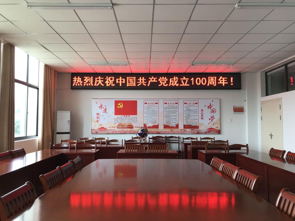 上午8:00,公司部分师生在佳山校区教一407会议室集中收看大会盛况。公司宣传标语都已点亮,营造热烈喜庆的气氛。