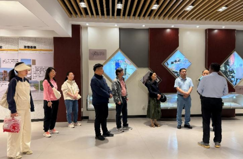 在含山博物馆凌家滩文化专题展厅,党员们驻足观摩距今5300年的玉器、陶器等文物,深入了解长江流域早期文明的辉煌成就。马广利表示,讲好中国故事,首先要读懂本土文化。我们将把凌家滩文化元素融入外语课程思政建设,进一步增强员工的文化传播能力。