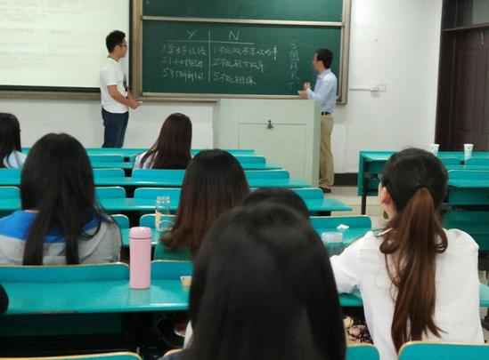 毛海军老师从企业的需求角度开讲,为同学们提出建议如何适应企业需求,从而求职成功。第一点说到高度的责任感,企业需要对工作负责的员工;第二点说到提高学习能力,在工作过程中不断学习,时刻保持激情;第三点说到作为企业的员工需要有时间观念,提高工作效率和执行力;第四点则是有良好的沟通交流能力,会有助于自己在职场打拼。接下来他找同学们上台互动,给出测试,让参与同学在同时面对两件事情选择孰轻孰重,还找了同学进行了模拟销售的环节,将理论与实践结合,给同学们留下深刻印象。最后他根据自己多年职场经历的经验,建议同学们无论在公司还是工作岗位上都要培养良好习惯,加强练习,让自己做得出色,在职场取得成绩。