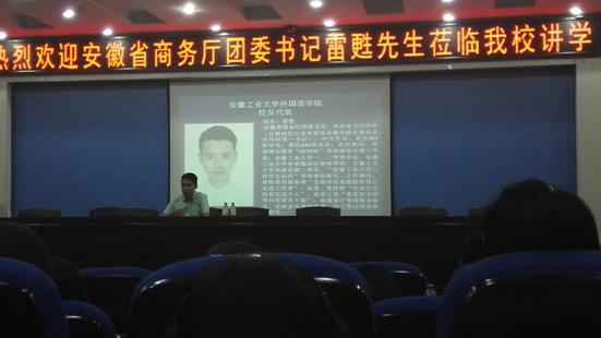 m88优秀毕业生,安徽省商务厅团委书记、外经处主任科员雷甦应公司m88邀请来校作优秀员工报告会。雷甦继参加了m882016届毕业生毕业典礼作为优秀毕业生代表发言之后,6月14日上午在图书馆一号报告厅作报告,m88师生集体聆听了讲座。