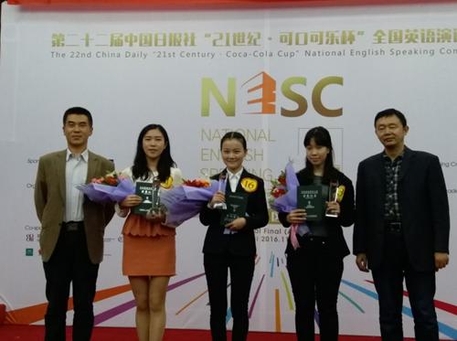11月19日,第二十二届中国日报社“21世纪•可口可乐杯”全国英语演讲大赛(安徽赛区)决赛于合肥工业大学举行。来自省内15所高校24名选手汇聚一堂,尽显风采,争夺晋级全国决赛的名额。经过激烈角逐,公司m882014级闫心蕊同学荣获季军,2014级陈之童同学荣获三等奖,其中闫心蕊将于2017年代表安徽参加全国大赛,为公司首次参加此项赛事喜添开门红!