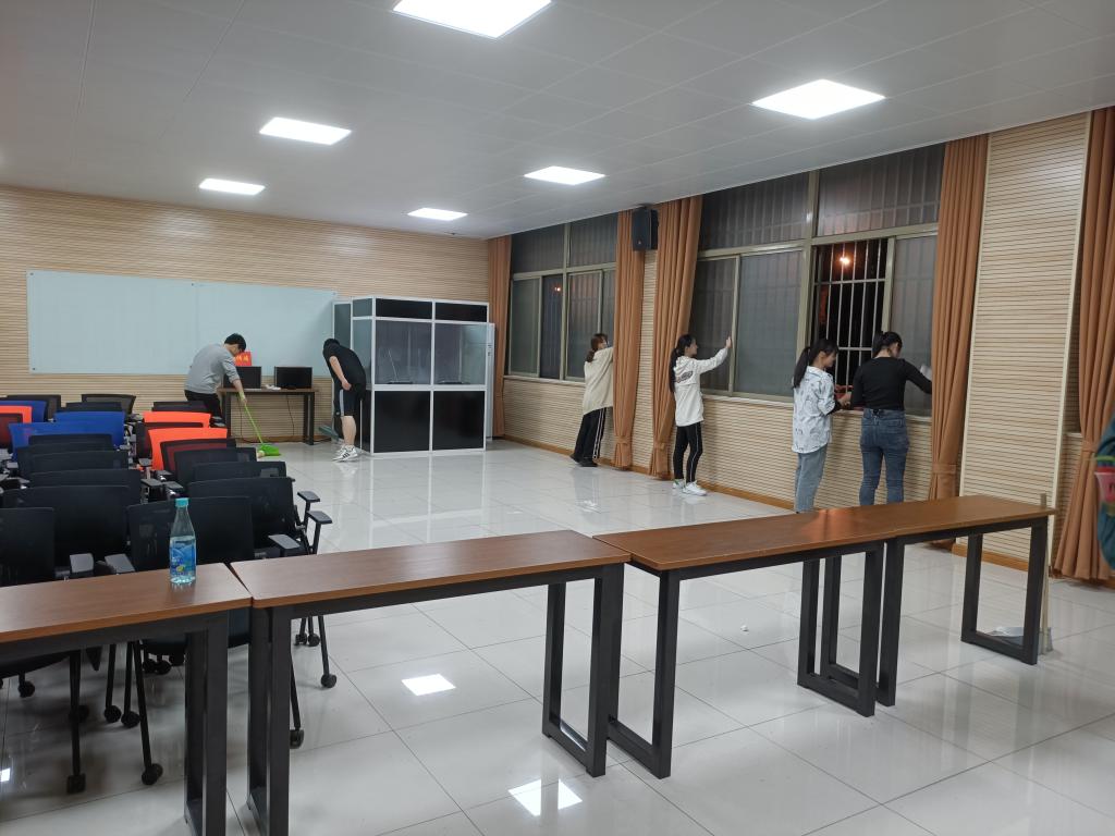 为积极贯彻落实公司《关于组织开展员工劳动教育宣传与实践周活动的通知》要求,充分发挥劳动教育的实践育人功能,在员工中营造劳动光荣的良好氛围,5月6、7日m88组织员工分批参与佳山校区教一和教二部分教学场所、多功能语音室、办公场所、会议室等清扫、保洁劳动实践活动。活动期间,同学们认真负责,整理文件、擦拭桌面、打扫地面,每个人都努力清理自己负责的卫生区域,亲身体会到了校园保洁工作人员的不易,