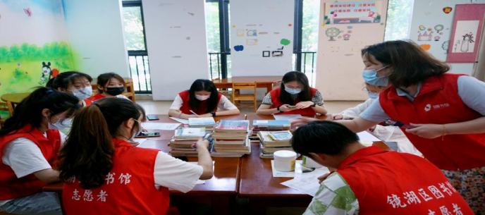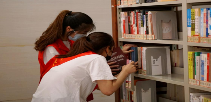活动中,志愿者们认真接待、耐心引导借还图书的市民,帮助工作人员进行疫情防控登记,维持秩序,协助市民办理借书业务,为图书馆归纳整理书目,学习了如何修复图书等知识。