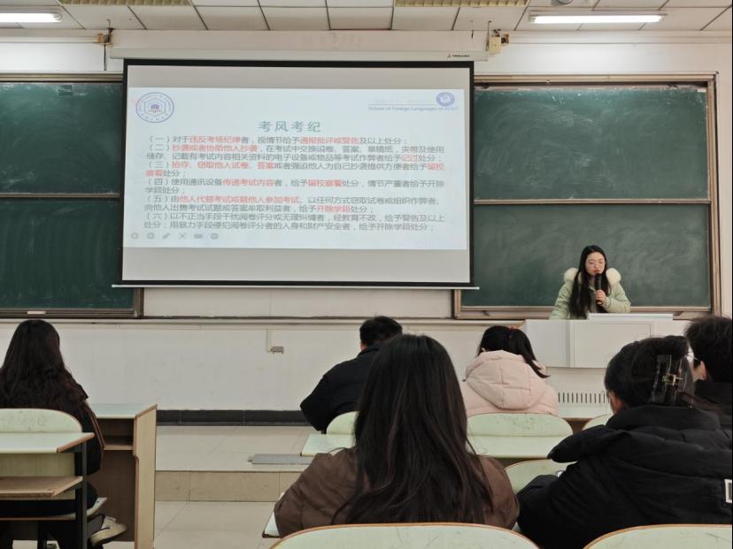 最后,张庆芳对同学们提出了殷切希望,她希望大家能够继续保持积极向上的学习态度,努力提升自己的综合素质;同时也要加强自我约束和管理,做到诚信考试、诚信做人。