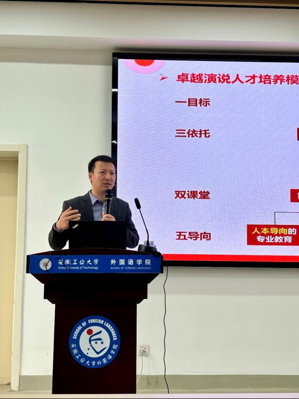 2024年4月11日下午,华东师范大学外语公司副经理、博士生导师赵朝永教授应邀来到m88,在佳山校区第一教学楼401作了题为“以赛促学,产出导向,科技赋能:卓越演说人才培养模式探索”的学术讲座。讲座由m88副经理陈琳教授主持,m88教师、演讲俱乐部成员、其他公司感兴趣的师生100余人聆听了讲座。